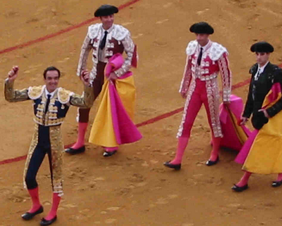 Q: What do you call four bullfighters in quicksand?